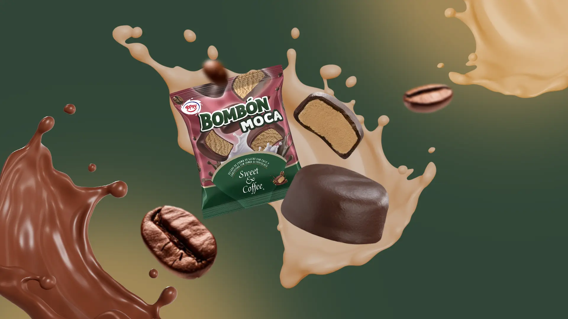 Todo lo que te gusta de Topsy en formato snack para esos antojos ¡on the go! Cremoso helado elaborado con 100% leche toni en forma de bombones y con el delicioso sabor del café Sweet and Coffee.