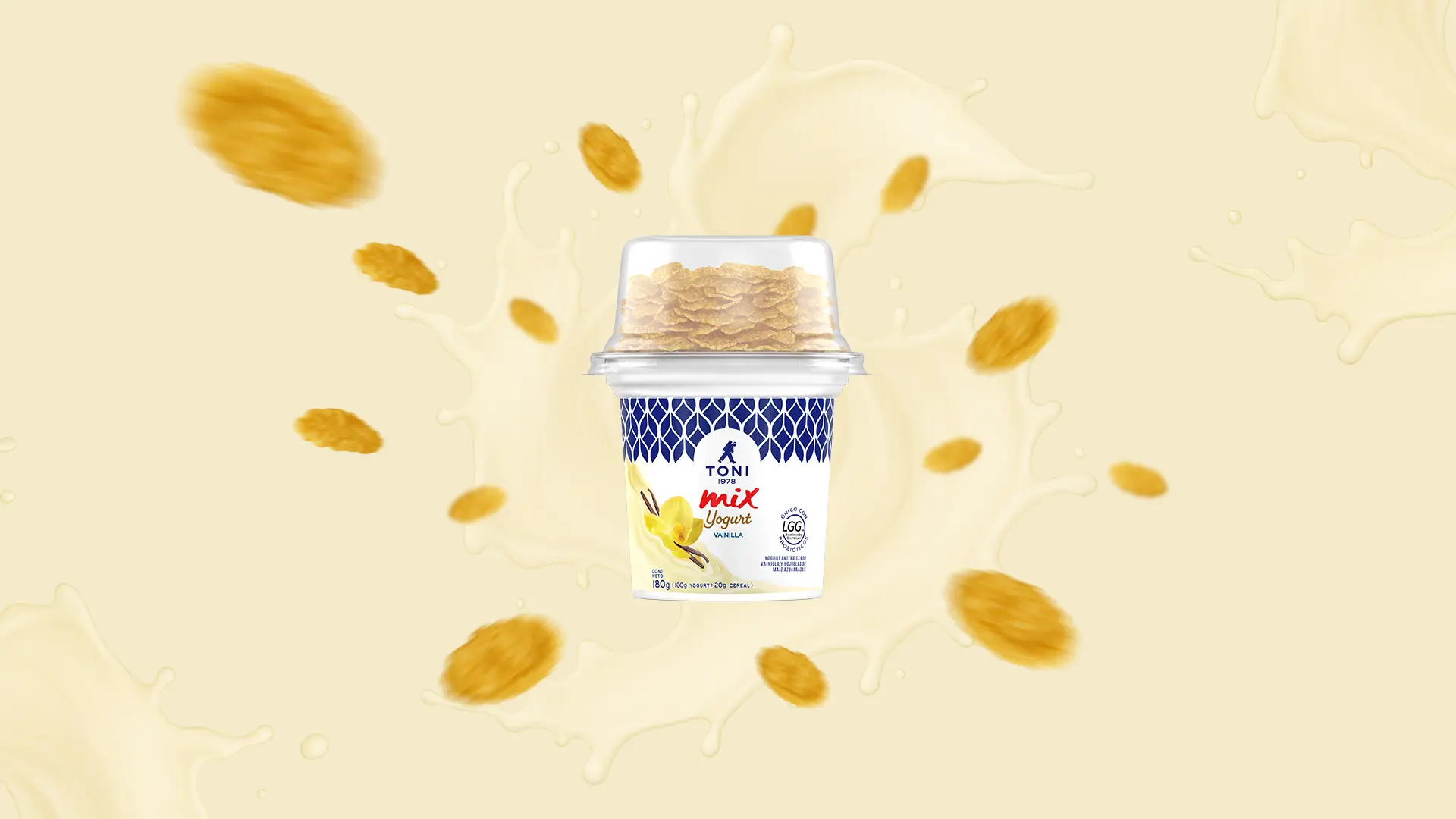 Toni Mix, delicioso y nutritivo yogurt con cereal, que aporta calcio, proteínas y Lactobacillus GG.