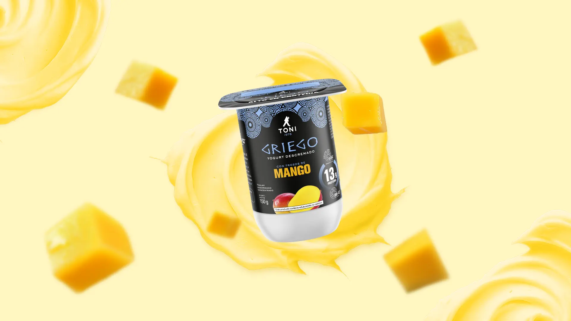 Yogurt Toni Griego, se caracteriza por su ALTO CONTENIDO EN PROTEÍNA, (9g – 16g por porción). Además es reducido en azúcar y 0% grasas trans. Disfrutalo en sus empaques on the go o dentro de casa en diferentes preparaciones. Ideal para complementar una dieta deliciosa y proteica. Sus sabores son: Frutilla, Durazno, Mango, Coco Limon, Maracuyá, Natura y Mora.