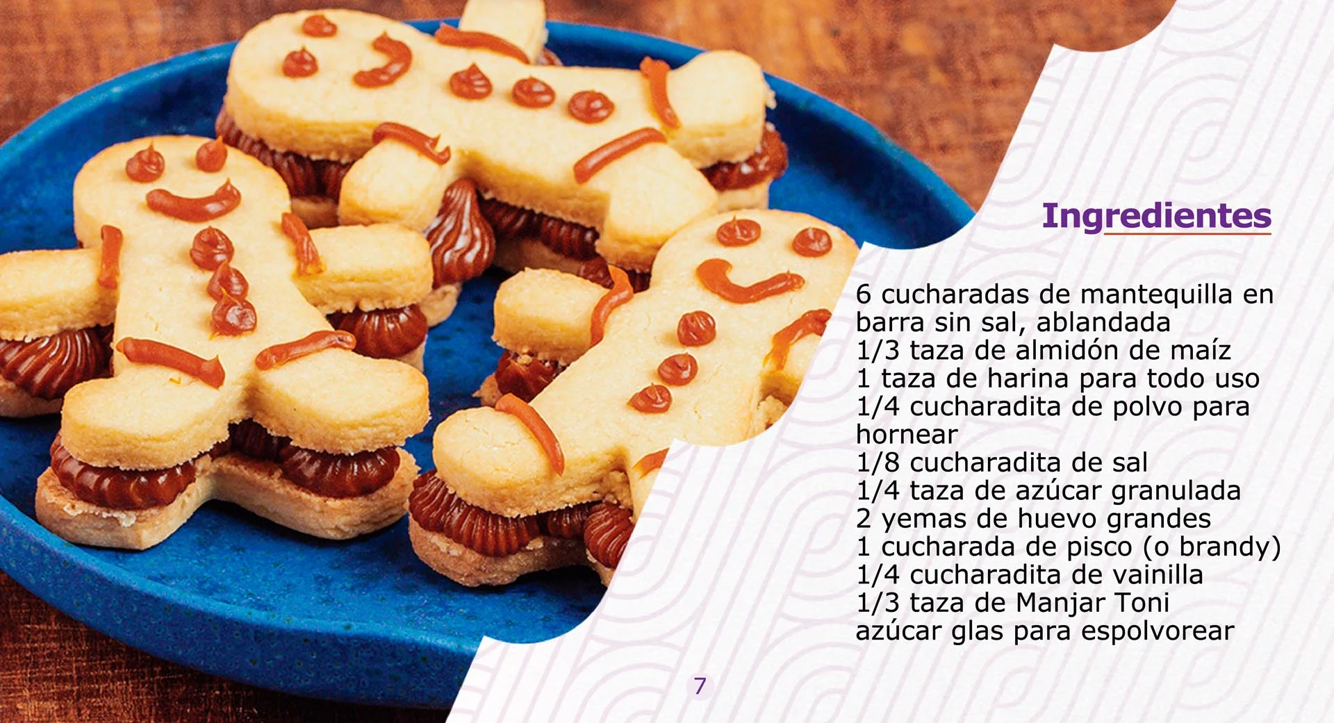 Galletas sandwich con 1/2 a 1 cucharadita de Manjar Toni. Espolvorear con azúcar glas.