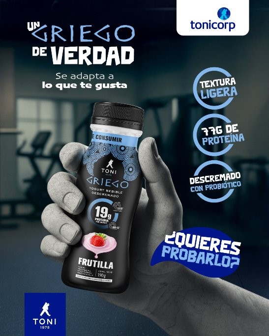 En TONI seguimos innovando para ofrecerte alimentos funcionales y llenos de valor nutricional, y hoy damos un paso más: lanzamos el primer yogurt griego bebible del mercado ecuatoriano. Cada envase tiene 77 gramos de proteína, dos cepas probióticas científicamente respaldadas y, por supuesto, un sabor que te encantará.