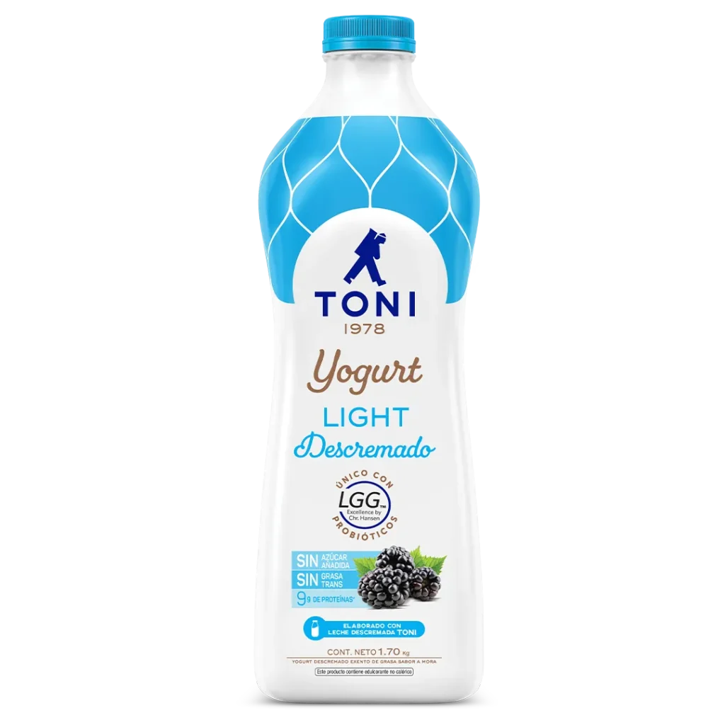 Yogurt Toni Light, es un yogurt SIN AZÚCAR añadida, elaborado con leche descremada, 0% grasa trans y ahora es deslactosado para facilitar tu digestión. Ideal para los desayuno y snacks bajo en calorías. Sus sabores son: Frutilla, Durazno, Vainilla y Mora.