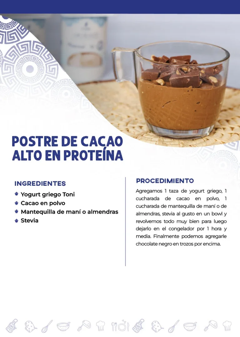 Postre de cacao alto en proteína