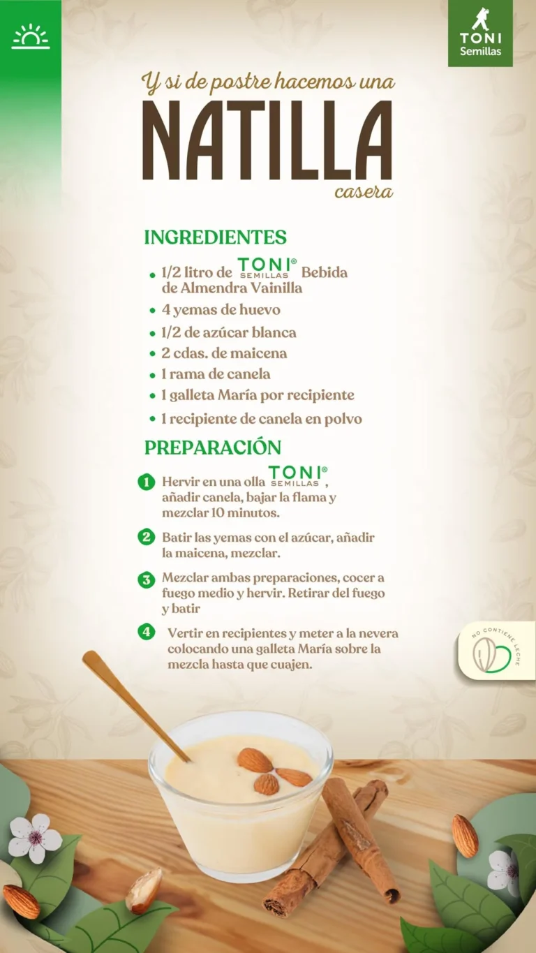 Natilla casera. Preparación sencilla con Toni Semillas o Manjar Toni según receta.