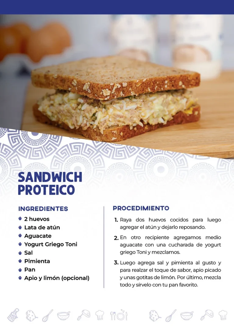 Sánduche proteico con huevo, atún y yogurt griego Toni, una opción nutritiva, cremosa y deliciosa para un desayuno o snack lleno de energía.