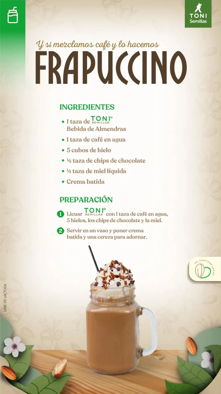 Frapuccino. Preparación sencilla con Toni Semillas o Manjar Toni según receta.