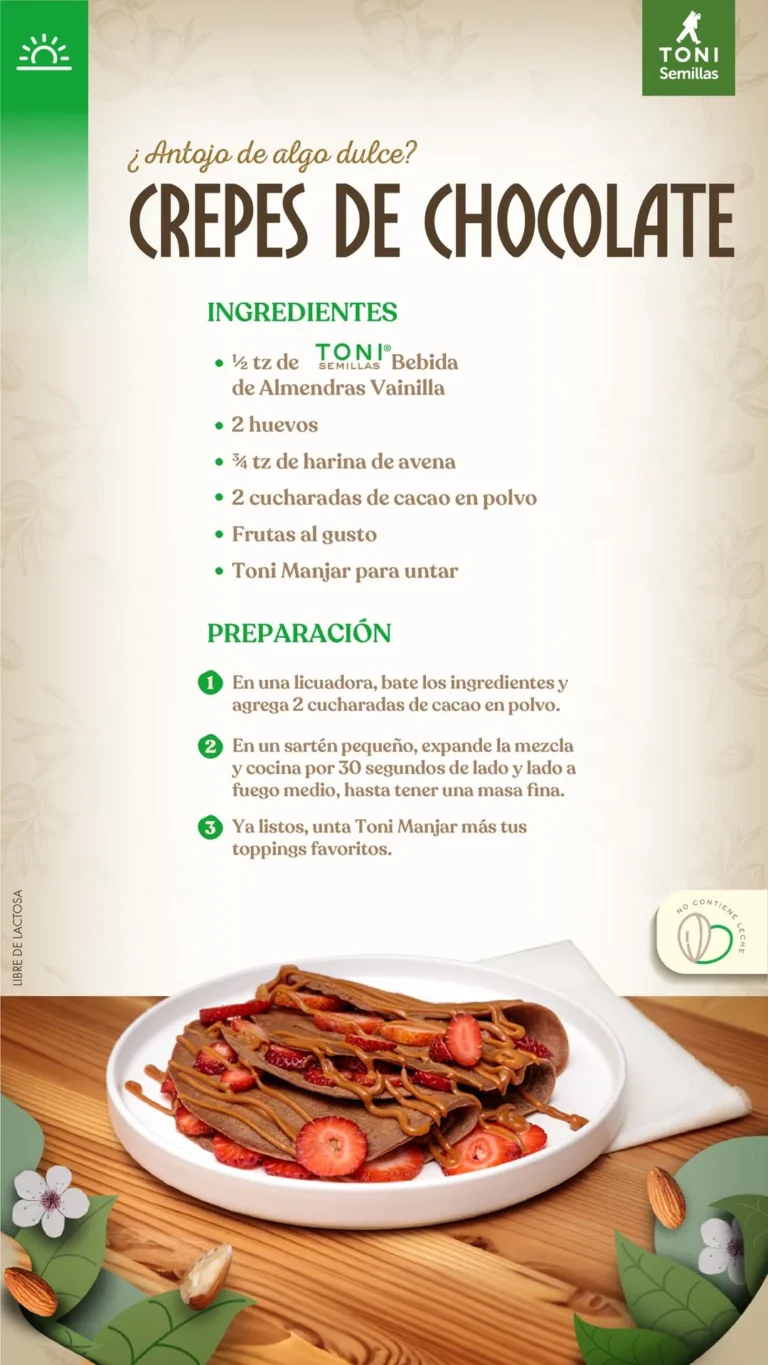 Crepes de chocolate. Protagonizada por Manjar Toni, obtén crepes gourmet con ingredientes deliciosos de Toni.