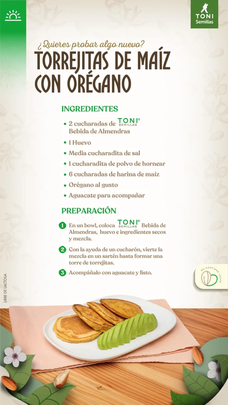Torrejitas de maíz con orégano. Preparación sencilla con Toni Semillas o Manjar Toni según receta.